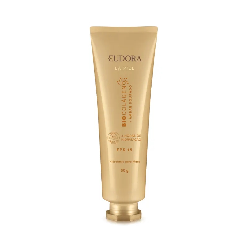 O Creme Hidratante para Mãos FPS 15 La Piel Âmbar Dourado foi desenvolvido com a tecnologia do Biocolágeno que, associado com o Pantenol e Niacinamida, traz mais firmeza para a sua pele, além de hidratar mãos, unhas e cutículas por até 8 horas.