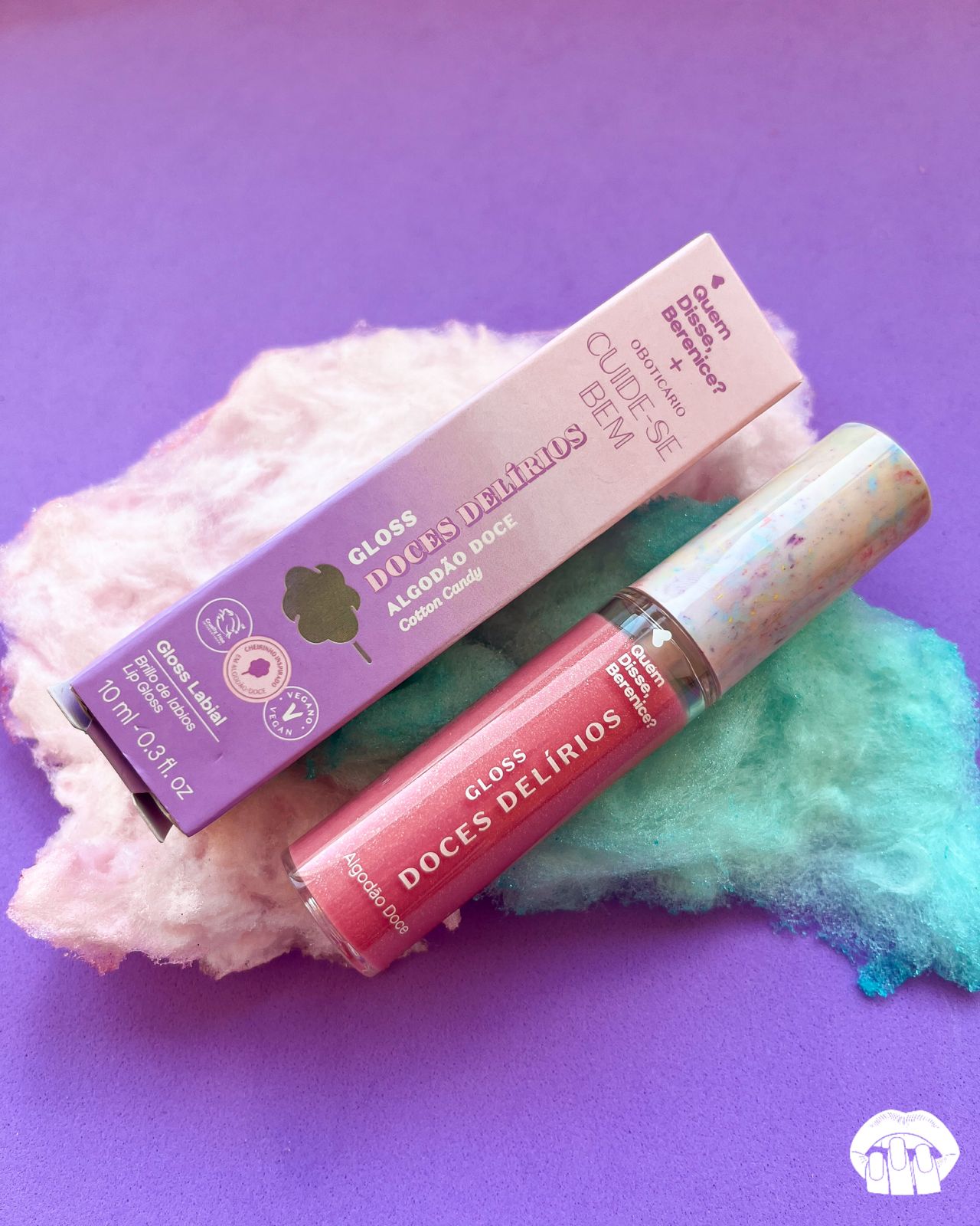 O Gloss Labial Rosa Cuide-se Bem Doces Delírios Algodão Doce Quem disse, Berenice? é TU-DO que você precisa. Para todas as ocasiões e rolês, traz uma mistura inesquecível de cheirinho de algodão doce e textura açucarada, para te transporta para momentos deliciosos!